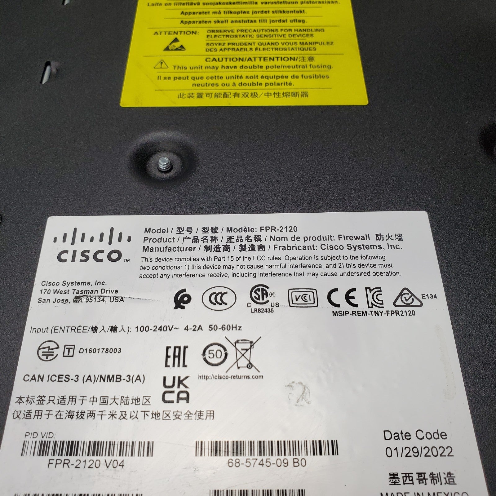 - Model: FPR2120 Cisco Firepower FPR-2120 V04 w/FPR2K-SSD100