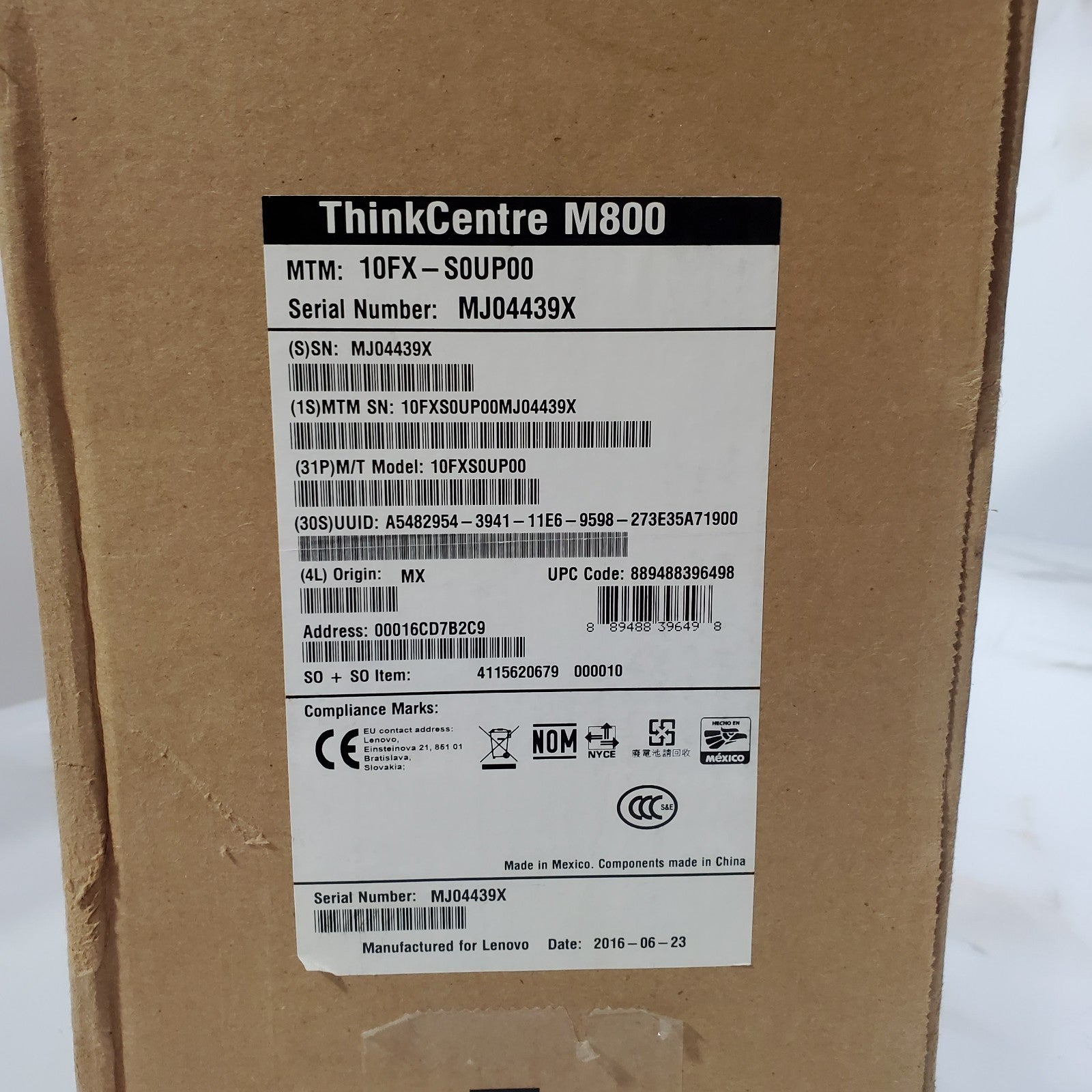 - Model: LENOVO ThinkCentre M800 SFF